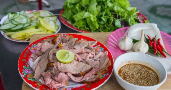 Bê thui Cầu Mống Đà Nẵng là đặc sản nức tiếng mà bất kỳ tín đồ ẩm thực nào cũng muốn thử. Miếng thịt bê được thui khéo léo, lớp da vàng giòn bên ngoài, phần thịt bên trong hồng đào mềm ngọt, giữ trọn vị tự nhiên. Khi ăn, thịt bê được cuốn cùng bánh tráng, rau sống tươi xanh và chấm với mắm nêm đậm đà, tạo nên hương vị hòa quyện khó quên.