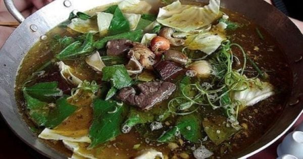 Nậm pịa là món truyền thống độc đáo của người Thái, nấu từ nội tạng bò hoặc dê cùng men tiêu hóa non, tạo nên vị đắng đặc trưng. Tuy “khó ăn” với người mới, nhưng ai ăn quen sẽ mê hương vị cay nồng, ngọt thanh và mùi thảo mộc núi rừng.